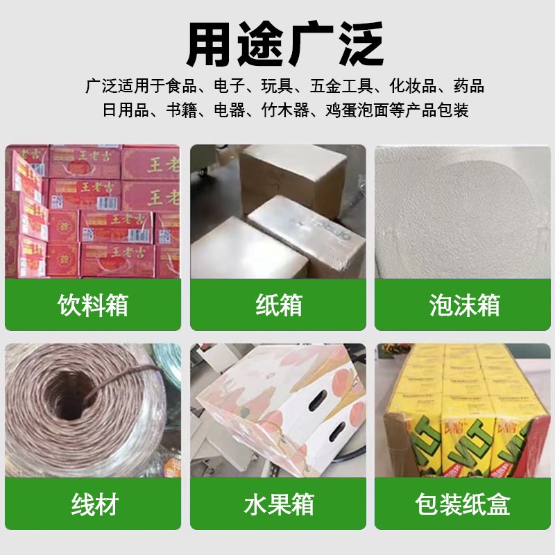 可处理尺寸范围广(长度 50-600mm、宽度 30-400mm、高度 20-300mm),支持方形、圆形、异形产品及多排组合包装(如 2-6 瓶饮料组合),仅需 2-3 分钟即可完成规格切换,无需频繁更换设备。