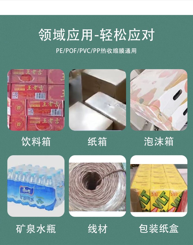 通过 PLC 控制系统与触控屏,可精准调节封切温度(50-300℃可调)、收缩时间(0.5-5 秒可调)及膜材张力,适配不同厚度(0.02-0.2mm)的 PE/POF 膜,避免膜材断裂、收缩不均等问题。