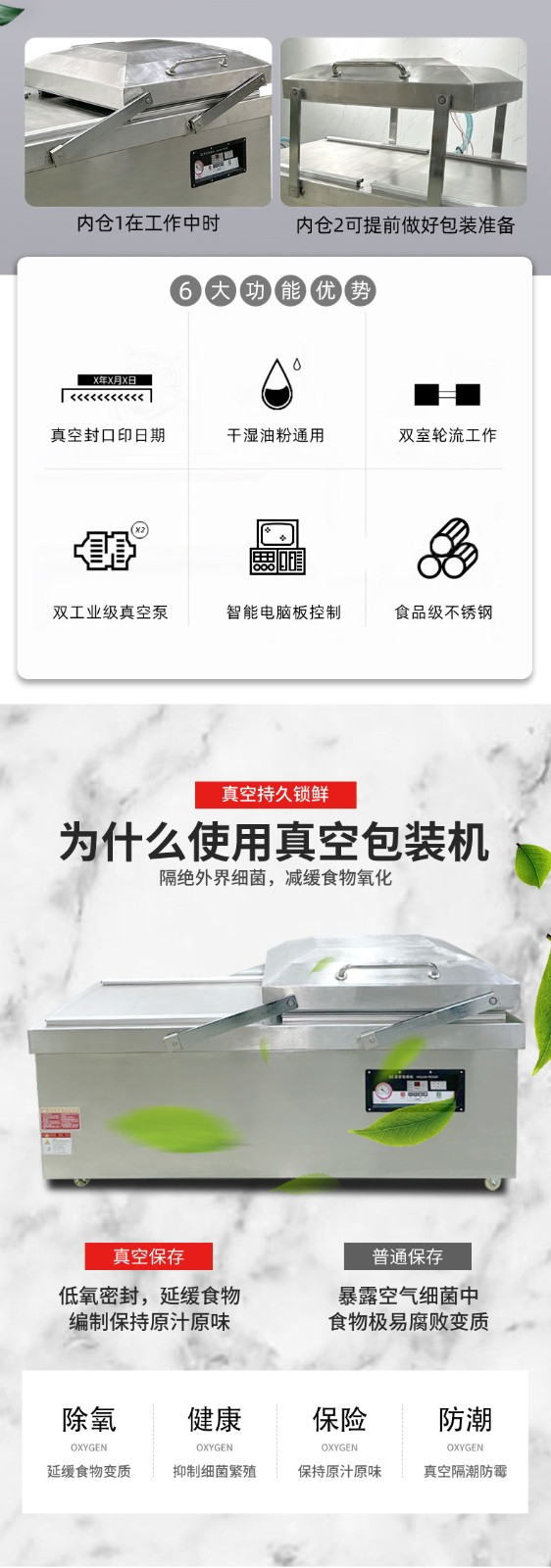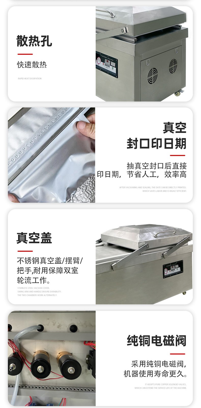 - 人工操作熟练度:操作人员放置产品、抚平袋口、取出成品的速度,直接影响两个真空室的交替衔接效率。新手操作可能导致 “空等” 时间增加。