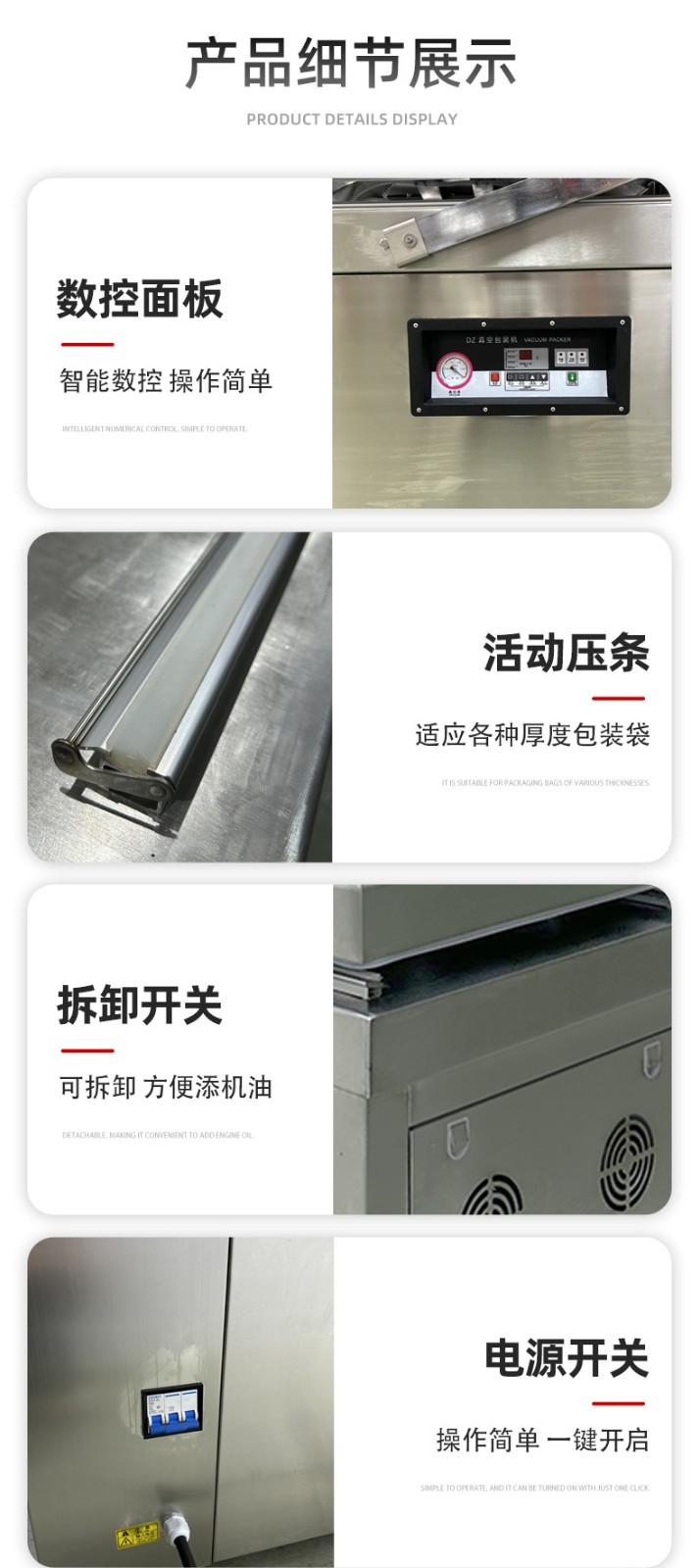 - 真空室容积:在真空泵抽气速率一定的情况下,真空室容积越小,抽真空所需的时间就越短,抽真空效率越高。因此,在选择双室平板真空机时,应根据实际包装需求,选择合适容积的真空室,避免过大或过小。