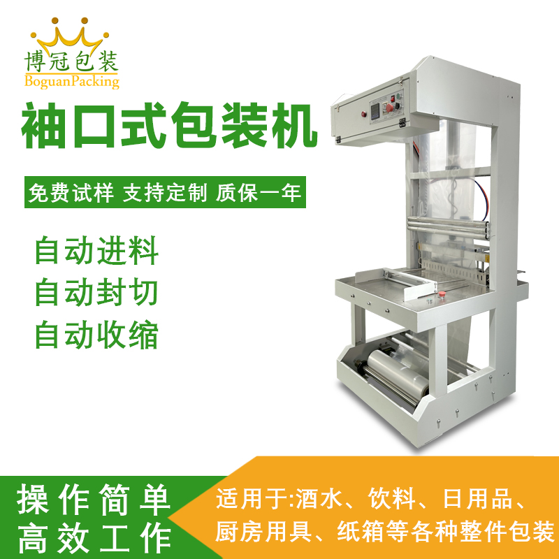 按自动化程度分类:可分为半自动袖口式热收缩包装机和全自动袖口式热收缩包装机。半自动需人工辅助完成产品放置或封口操作,适用于中小规模生产;全自动则自动化完成输送、封切、收缩等全流程,适合大规模生产。