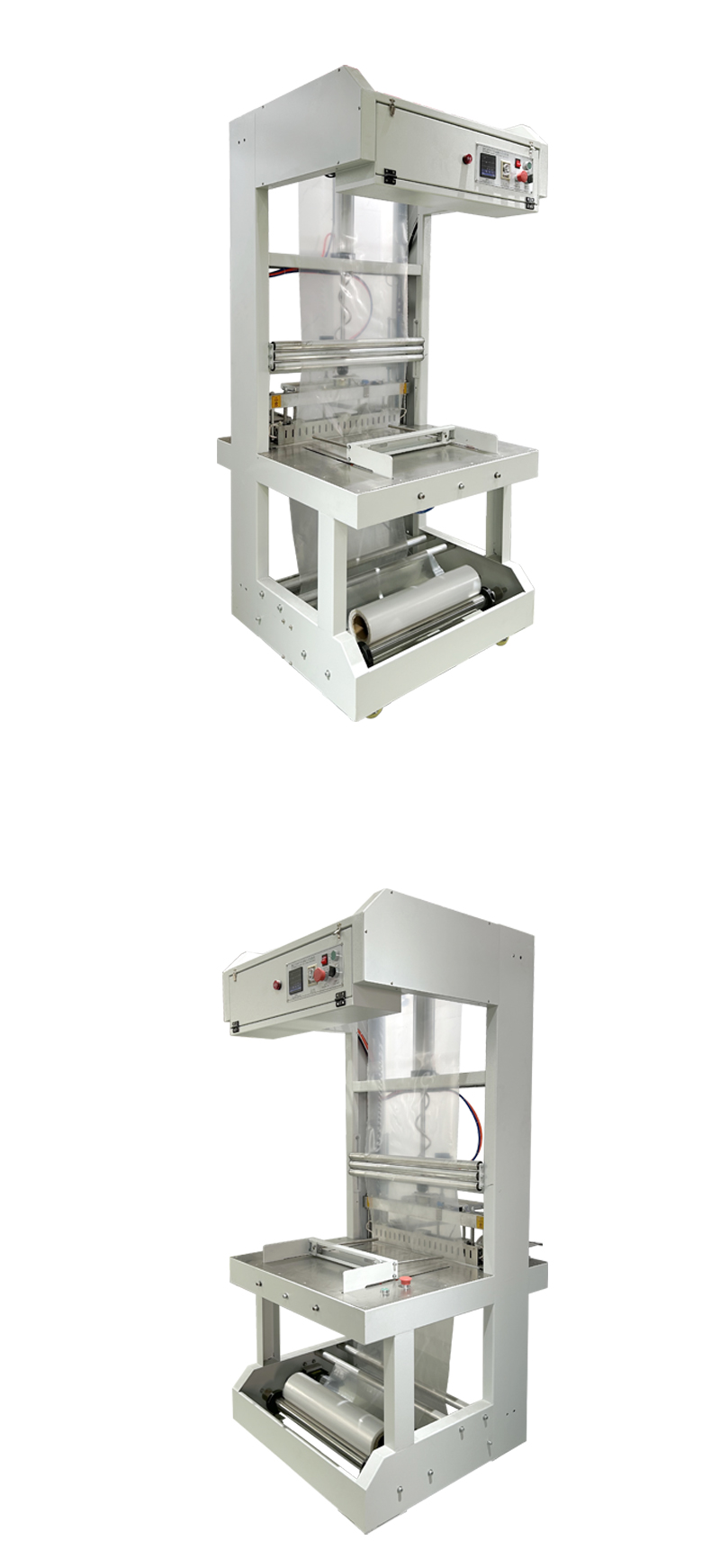 通过 PLC 控制系统与触控屏,可精准调节封切温度(50-300℃可调)、收缩时间(0.5-5 秒可调)及膜材张力,适配不同厚度(0.02-0.2mm)的 PE/POF 膜,避免膜材断裂、收缩不均等问题。