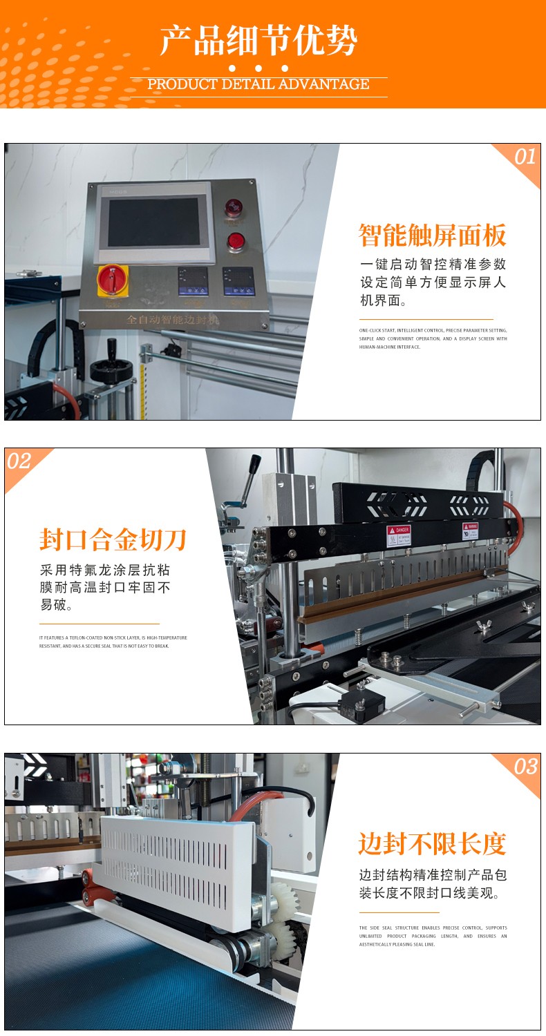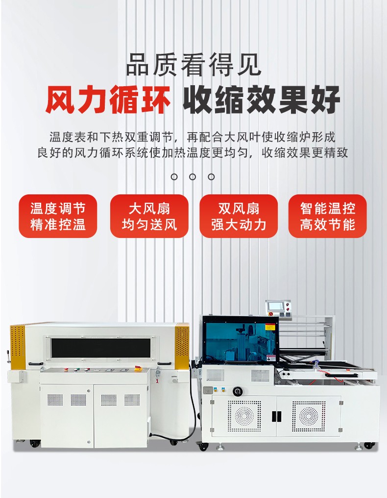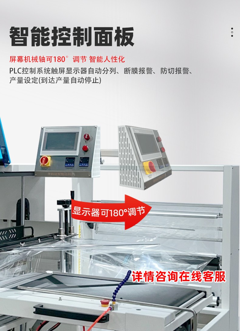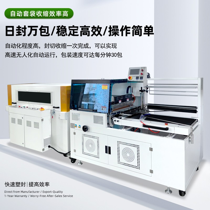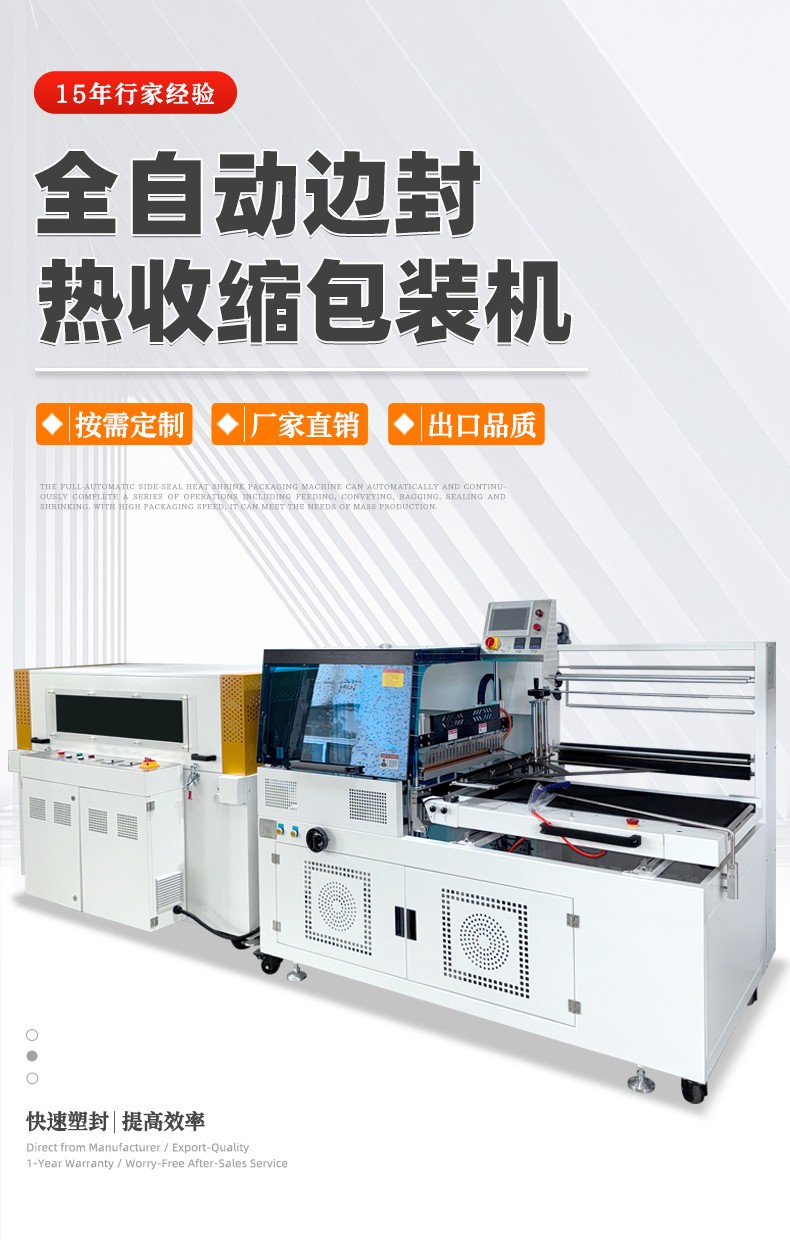 全自动边封热收缩包装机的高自动化,核心体现在流程闭环自动化和操作智能化,能大幅减少人工参与,提升生产效率和稳定性: