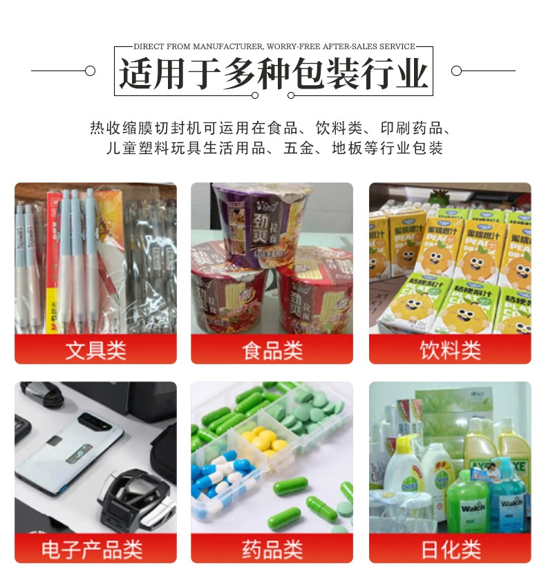 - 长度无限制:拓展包装适用范围,尤其解决长尺寸、异形长条产品的包装难题,同时保持封口牢固、收缩平整的包装效果。