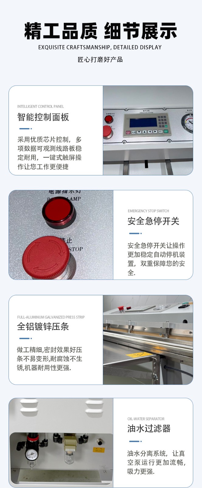 - 放入空白包装袋,进行真空封口测试,检查封口是否平整、无漏封、无焦糊(若封口不牢,可适当调整温度;若焦糊,需降低温度或时间)。