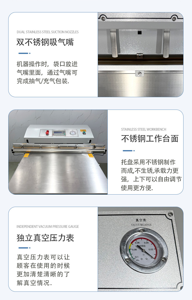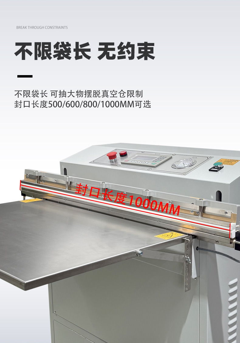 - 外抽真空包装机的热封条通常位于抽气嘴下方或封口机构处,外部有金属防护盖(防止误触高温)。