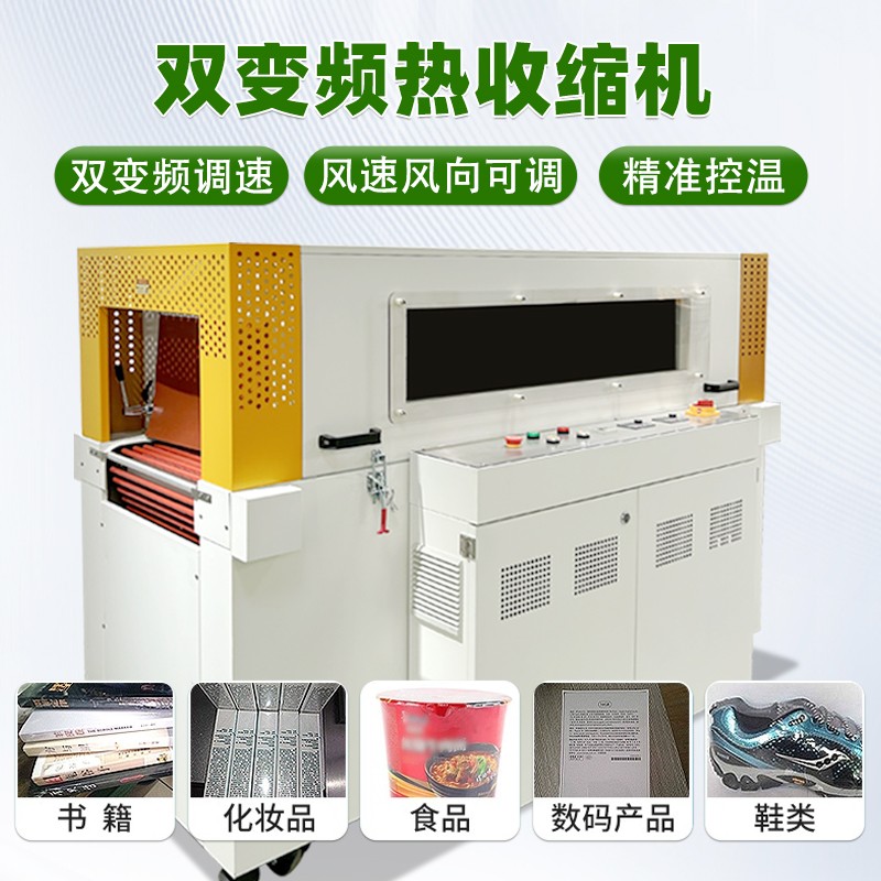 相比普通热收缩机的定功率加热、定速风机模式,双变频加热 / 热风系统的优势在于温度精准可控、热风分布均匀、节能降耗显著,既能避免薄膜烫伤、收缩不均等问题,又能适配不同规格产品和薄膜的包装需求。